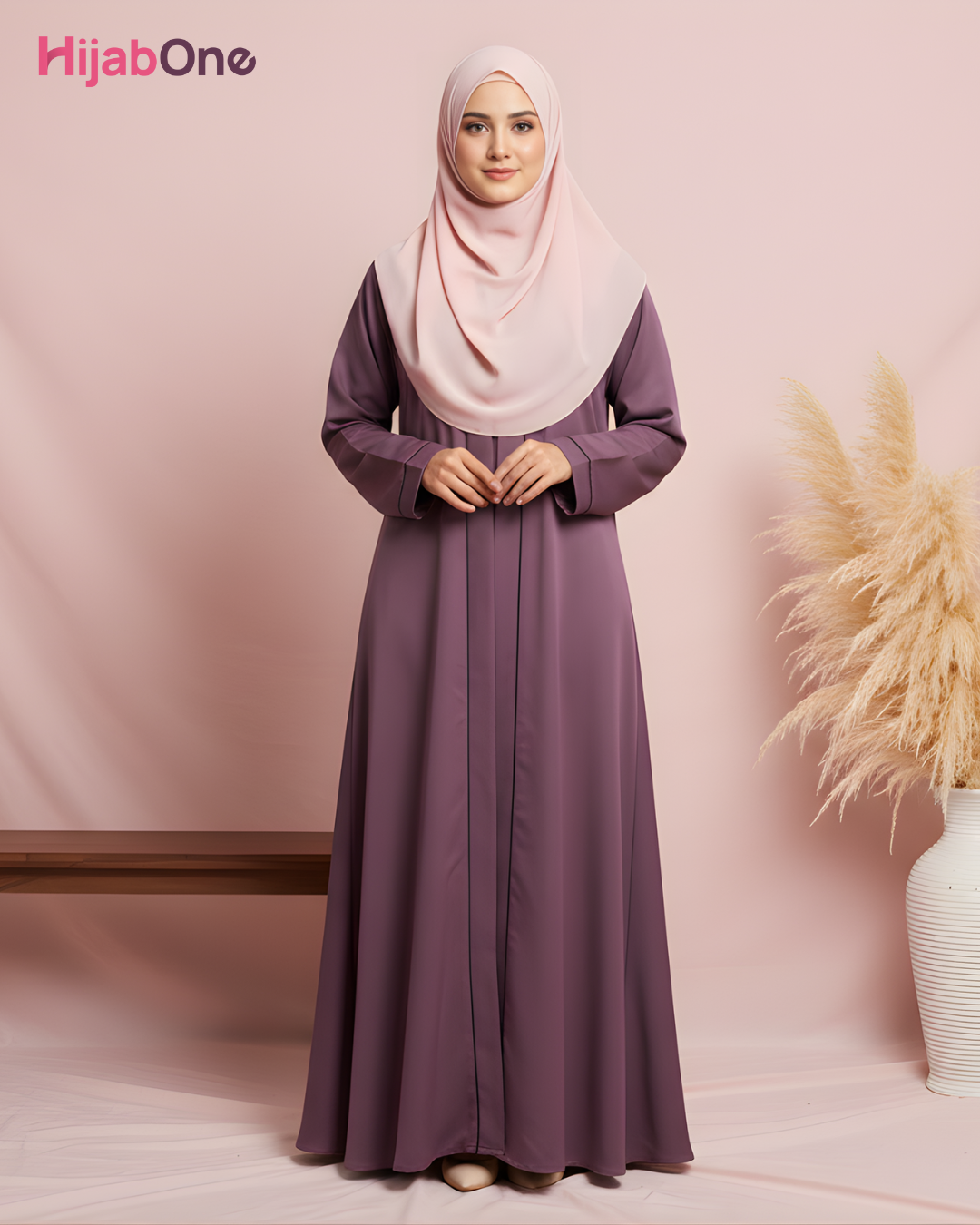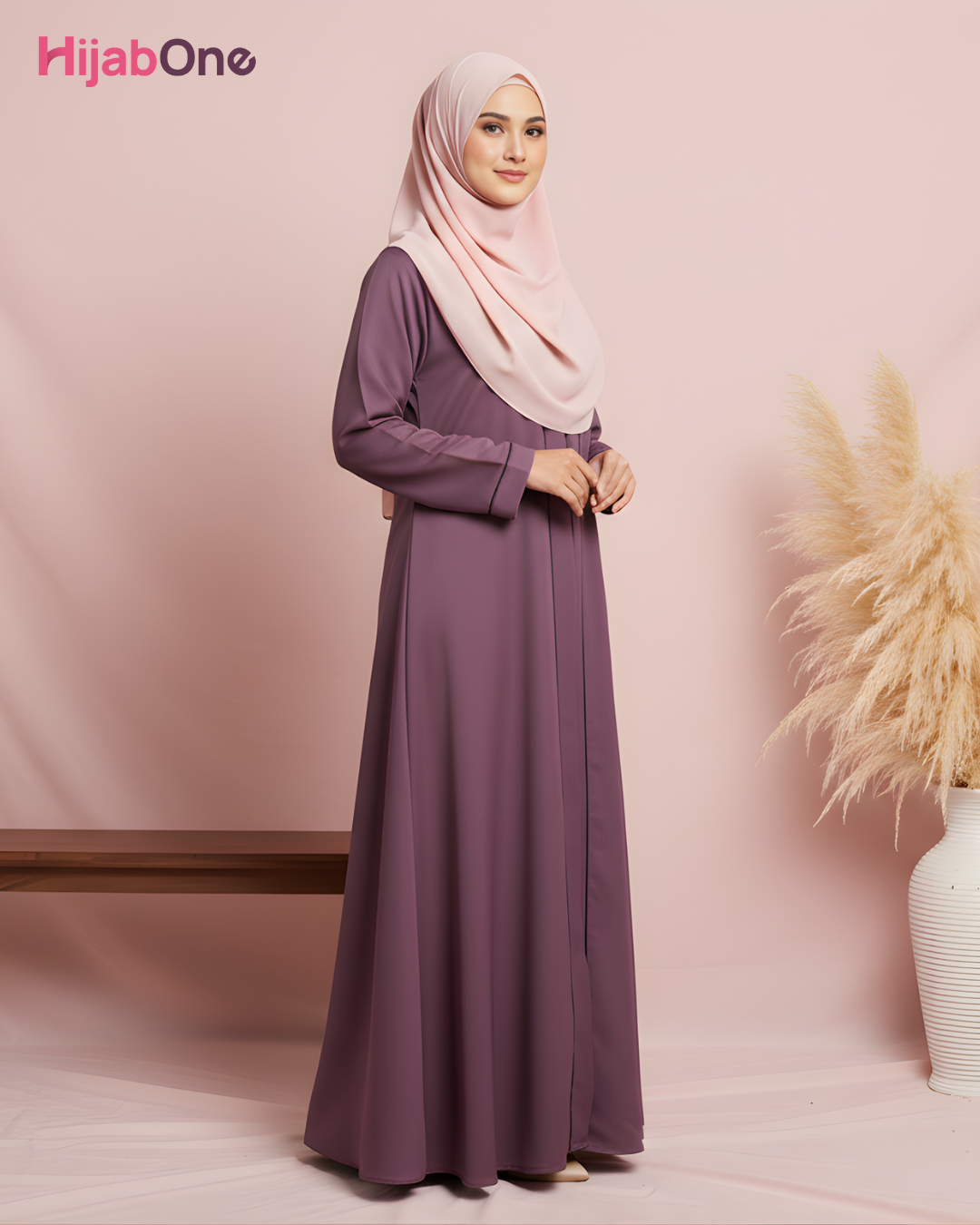 Full-Length Tich Button Dark Pink Abaya for Women | HIJABONE | H1A006